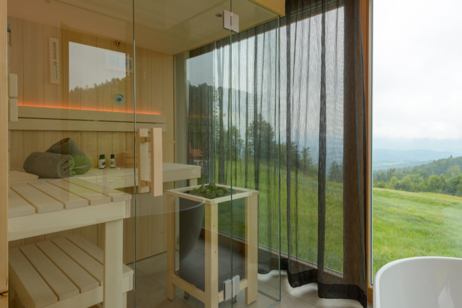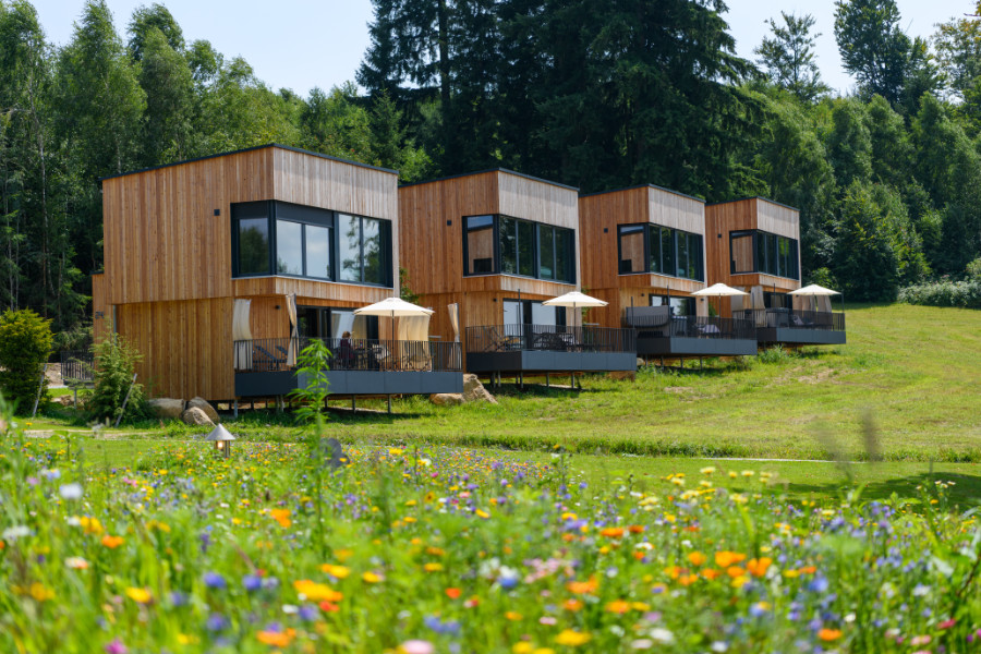 Die GutsAlm Harlachberg im Bayerischen Wald bietet eine einzigartige Auswahl an Schlafmöglichkeiten, die Naturverbundenheit, Komfort und Privatsphäre vereinen. Ganz neu sind die Erdschlafhäusl und Waldschlafhäusl, die mit exklusiven Annehmlichkeiten wie freistehenden Badewannen, Saunen und teilweise Whirlpools ausgestattet sind. Neben einer Hofkapelle aus dem 17. Jahrhundert und dem Bauernhaus mit der Gaststube „Heinrich“, sowie einem wunderbaren Biergarten, gehört das Haupthaus, das Atelierhaus am Naturteich, eine liebevoll restaurierte Jugendstilvilla, das Naturhaus sowie drei romantische Wiesnschlafhäusl am Waldrand zur GutsAlm Harlachberg. Im Naturhaus – einem der schönsten Yogaräume, die wir bislang gesehen haben – finden unsere Yogastunden mit Blick direkt in den Wald statt.
