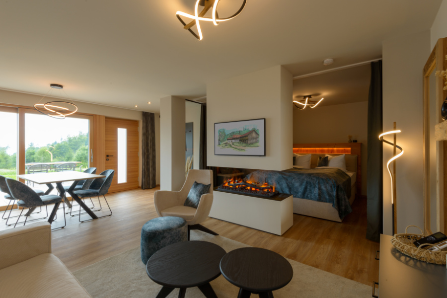 - Ein großzügiges Raumkonzept mit Schlaf-, Wohn- und Küchenbereich